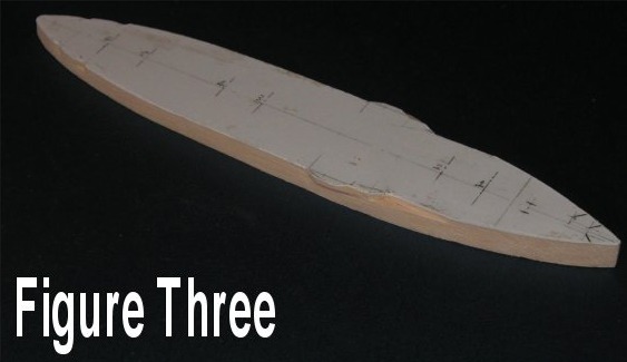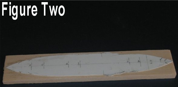 rather than white glue to avoid hull warping) to a plank of balsa which had been