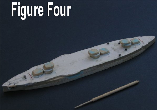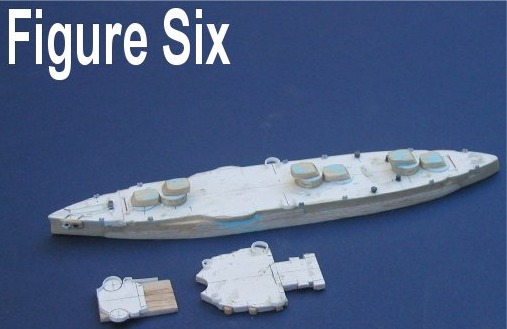 quad mount shields. Figure Seven shows the hull with superstructure decks glued