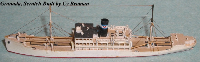 Cy Broman was an innovator in the scratch building of 1:1200 models. Broman started HR Products in the early 1960's and operated it until his death in 1993. HR Products still produce metal parts in various scales for ship model builders. Broman scratch built models starting as far back as before WW II. In the early 1960's he experimented with a number of new mediums for scratch building. The CAVINA incorporates some of these. The hull is wood, but the superstructure is made from plastic sheet, and many of the parts are metal or brass. Later, on some of his models he tried cast resin parts, including even resin hulls. Today, we take resin, and the use of sheet plastic in modeling as a given, but in the early 1960's these materials were relatively new for scratch building, and resins in particular were nowhere near as good or as easy to use as they are today.