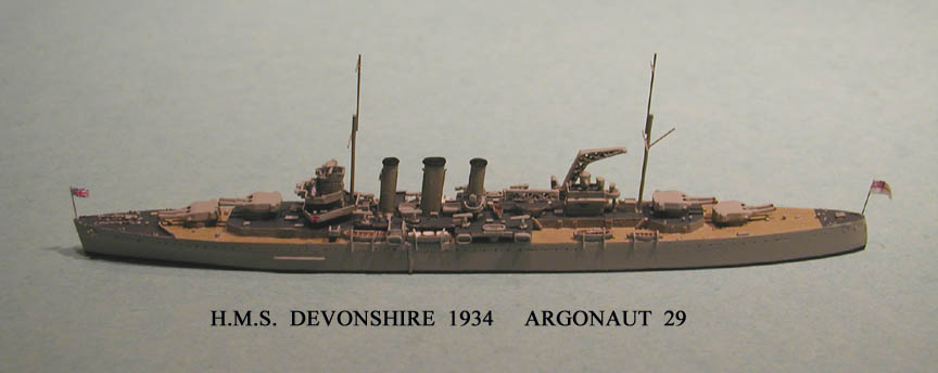 The British County Class cruisers of the inter-war period made up the bulk of Britain’s fleet of heavy cruisers in World War II and thus, as a group, were a significant part of the Royal Navy ‘s cruiser force between 1925 and 1945. Like all the heavy cruisers built between the wars, the genesis of these ships lay with the Washington Treaty of 1922, rather than in the historical progression of cruisers over the preceding decades. While the British proposed the establishment of a limit in cruiser size to 10,000 tons and eight-inch guns, their own requirements really called for smaller, more numerous ships. The 10,000 ton provision really best suited American needs, given the requirements of a potential Pacific war. Yet it was the British who suggested these numbers, in order to retain their new 9,500 ton, 7.5-inch gunned Hawkins Class ships. Once all the other major powers began planning to build to this limit, the Admiralty felt compelled to compete and build to the maximum as well. And so, during the 1920's all the major powers began to build eight-inch gunned 10,000 ton cruisers. These ships were not at the time known as "heavy" cruisers. There existed at the end of World War I three basic classes of cruisers: Armored cruisers, light cruisers, and scout cruisers. As the 10,000 ton, eight-inch gunned cruisers were universally designed with limited armor protection, they did not take on the name "armored," instead, being variously labeled "tinclads" or "treaty cruisers" by the press, or more officially "light" cruisers by the government. The term "heavy" cruiser came into use in the 1930's only when the first of the Geneva Conference six-inch gunned cruisers began to enter service and a distinction became necessary.