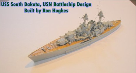From the United Kingdom there is the model of USS South Dakota, scratch-built by Ron Hughes. This model of the South Dakota class battleship (1923),was made last year by Ron Hughes, onetime supplier of Bassett-Lowe, U.K. The hull is wood and he used both plastic and metal for the details.