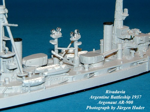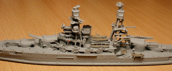 Hiraga 1930 IJN Battleship Design - (J115) The Hiraga design carries her secondary guns in mixed arrangement: 4 twin turrets and eight single casemate mounts. Photographs by Bob Weymouth.