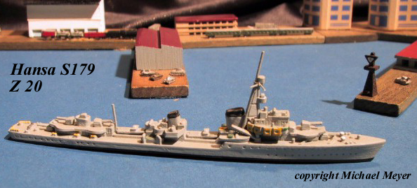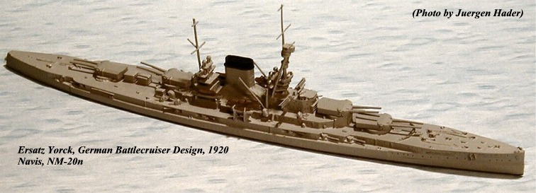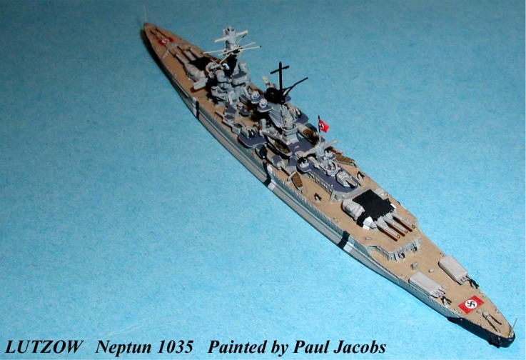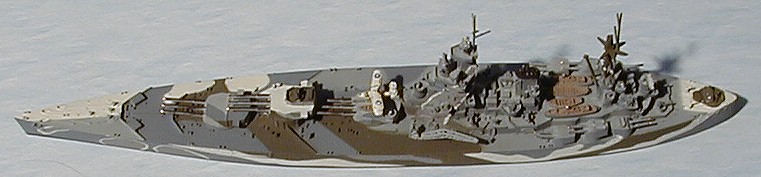 H39 German Battleship Design with Eight 16-Inch Guns, Superior 1:1200 Scale - This is the H-39 German Battleship Design with eight 16inch guns in 1:1200 scale by Superior Models, model G104. This design was the basic plan proceeded with and other than the main battery was no different than the design with twelve 15-inch guns, G103. This class was cancelled due to higher priorities for U-Boat construction. By Bob Weymouth.