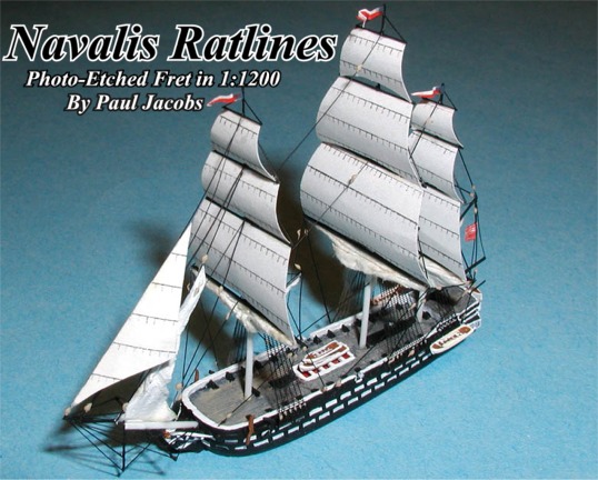 Navalis has issued several 1200/1250 scale photo-etched brass sets. These include radars for U.S. ships, and two generic ratline sets (#1250-1 Small, and #1250-2 Large). Illustrated here is the use of these ratlines in the construction of the Skytrex model NS 64 NORTH CAROLINA, which I built as her sister ship, the DELAWARE. NORTH CAROLINA and DELAWARE were two of a number of ships of the line built for the U.S. Navy in the early 1800's. Both ships had long and active careers.