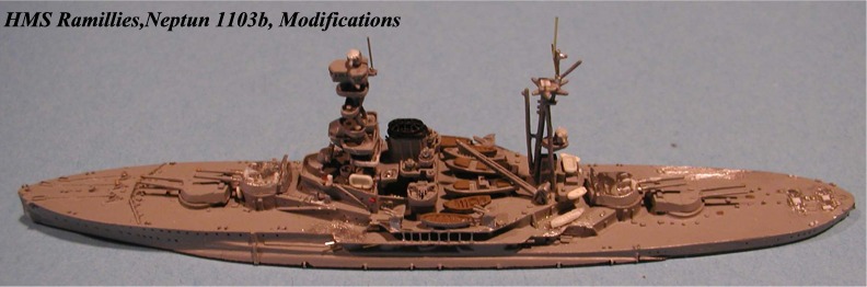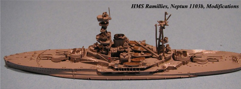 If you are contemplating doing this conversion, however, my advice is: Don’t. Why? Well, this is a good example of a bad plan well executed. The reason is that there is a much simpler alternative: Neptun’s ROYAL OAK. This model, is in pre-war rig, and would require much less work to convert to RAMILLIES, the primary changes being an added portion to the bridge, a different crane, and the removal of the catapult from X turret. All of this would entail significantly less work than what I had to do with this model. The bridgework and crane were already on this model, which is what impelled me to do the conversion; but the alternative would have made more sense.