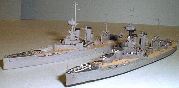 model of IRON DUKE as a gunnery training ship circa 1939, back to one of the class circa