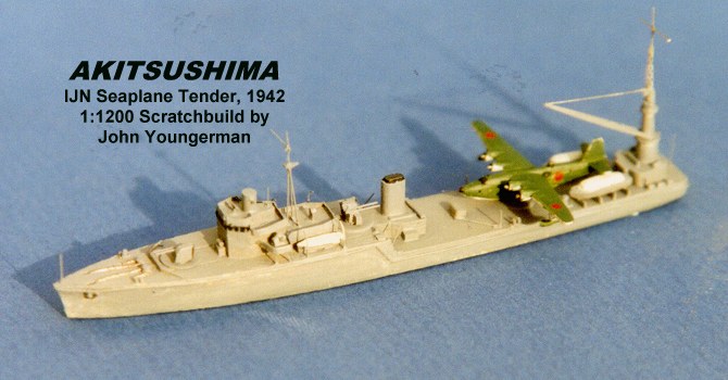 Akitsushima, IJN Seaplane Tender | 1:1200 balsa wood scratchbuild from John Youngerman |