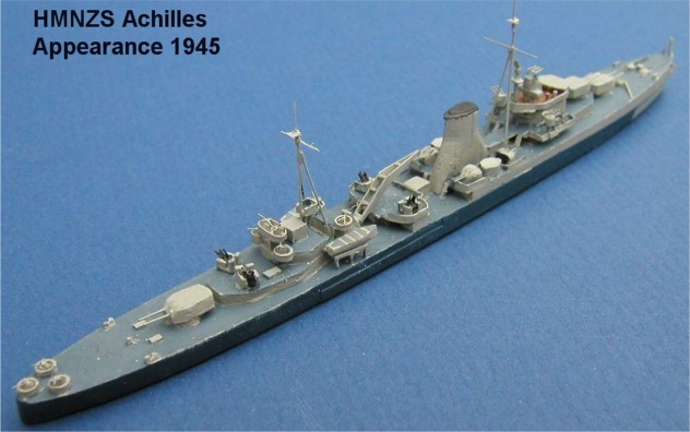 HMNZS Achilles, CL, 1945, #2, #3 | 1:1200 balsa wood scratchbuild from John Youngerman |
