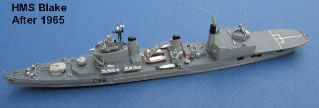 HMS Blake, CL, Post 1965, #2, #3, #4 | 1:1200 balsa wood scratchbuild from John Youngerman |