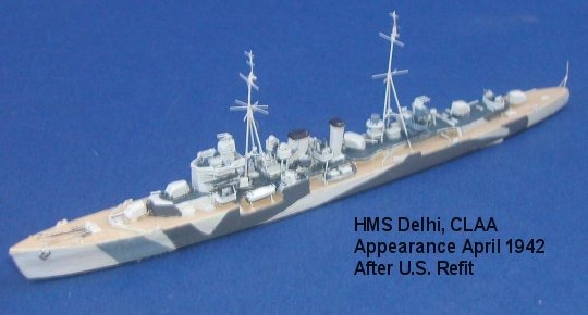 HMS Delhi, CLAA April 1942, #2, #3 | 1:1200 scratch built by John Youngerman |