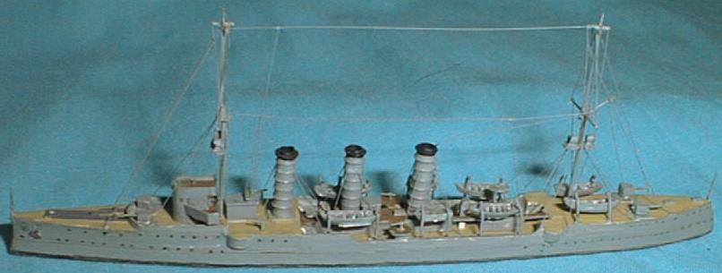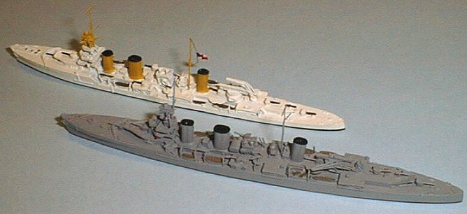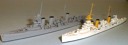 HMS Emerald, #2 | Two versions of British CL Emerald, Neptun N 1147 and Argonaut AR 36. The Argonaut model painted white with buff by Paul Jacobs |