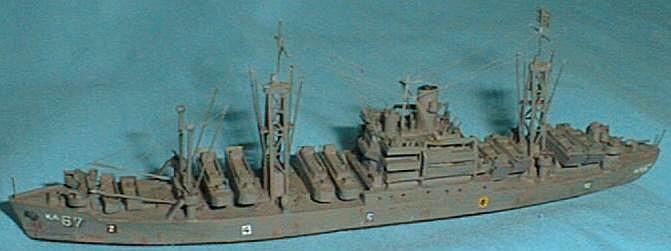 | USN AV Tangier | Built by Paul Jacobs from a Len Jordan C-3 hull. Hull and superstructure are resin. Paul added metal and plastic parts to make after raised deck, booms, masts, boats, large crane aft etc. Paul completely scratch built the large crane. | |