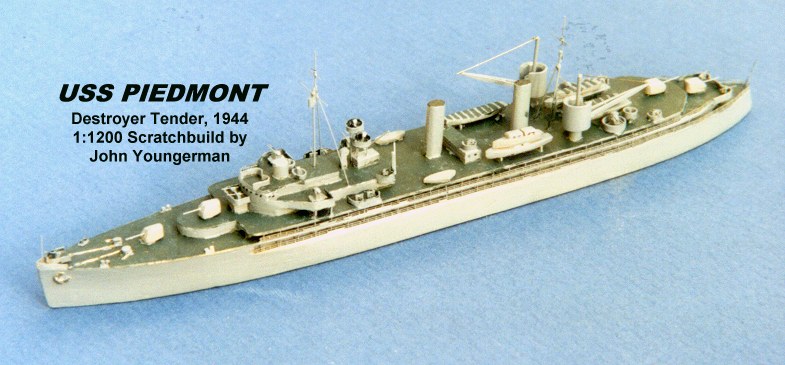 USS Piedmont AD17 | 1:1200 balsa wood Destroyer Tender scratchbuilt by John Youngerman |