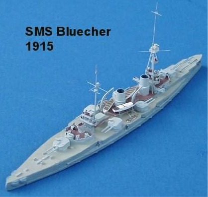 SMS Bluecher, German Armored Cruiser, 1915 | 1:1200 balsa wood scratchbuild from John Youngerman |