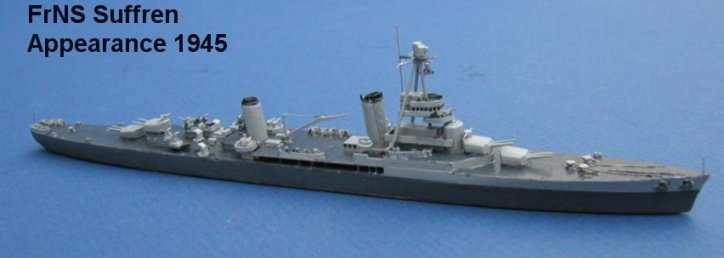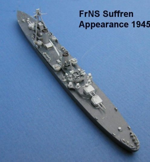 Suffren, French CA, 1945, #2, #3 | 1:1200 balsa wood scratchbuild from John Youngerman |