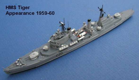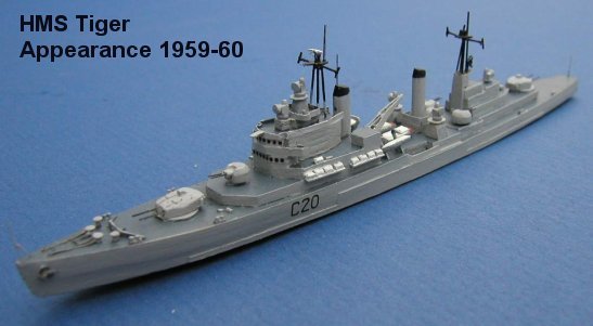 HMS Tiger, CL, 1959-60, #2, #3 | 1:1200 balsa wood scratchbuild from John Youngerman |