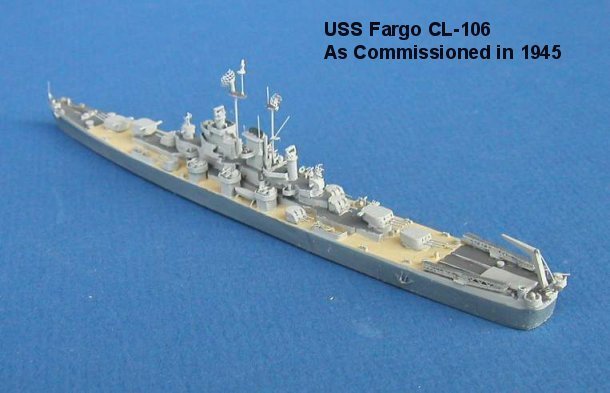 USS Fargo, CL-106, 1945, #2 | 1:1200 balsa wood scratchbuild from John Youngerman |
