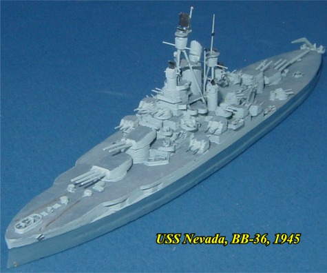 | USS Nevada, BB-36, 1945, #2 | 1:1200 balsa wood scratch-build from John Youngerman | |
