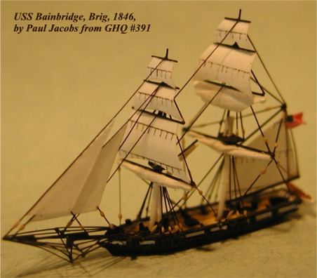 USS Bainbridge, Brig, 1846, #2, from GHQ #391 | Rigging, new sails, and other modifications were made to the stock model. By Paul Jacobs. |