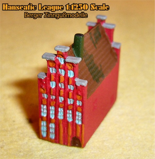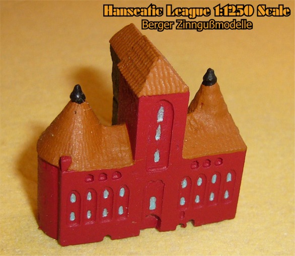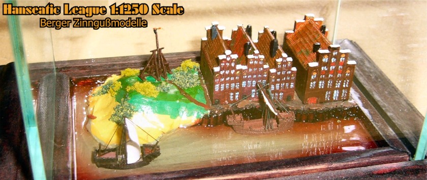 Just as the Mediterranean started the Renaissance around the various city-states of Italy, in the North of Europe Germanic city-states formed a different type of relationship centered around the Baltic Sea. The Hanseatic League was formed to promote and monopolize commerce in the Baltic Sea. The the era of cogs and caravels, unique northern European architecture, still seen in Europe, had evolved. Berger Zinngußmodelle has developed a series of 1:1250 scale ship and building models of this era.