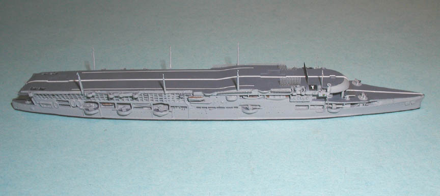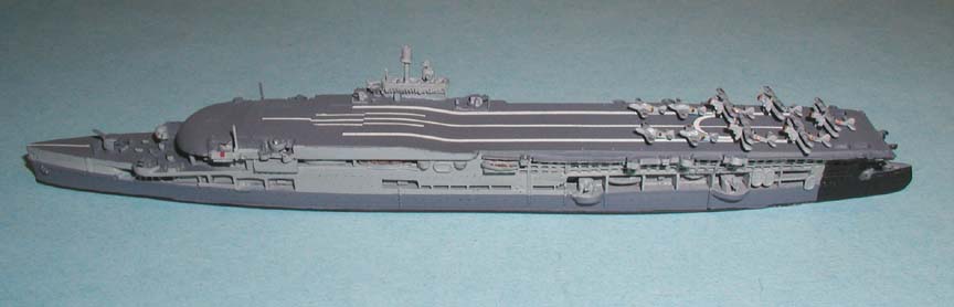 The model of Furious circa 1932 depicted here is a conversion done by the author. Converted from an Argonaut model, the armament has been extensively retrofitted, and the forward flying off deck filed down to a slope. Among other changes, the modified model mounts single 5.5" guns, instead of the twin 4" guns on the original model.