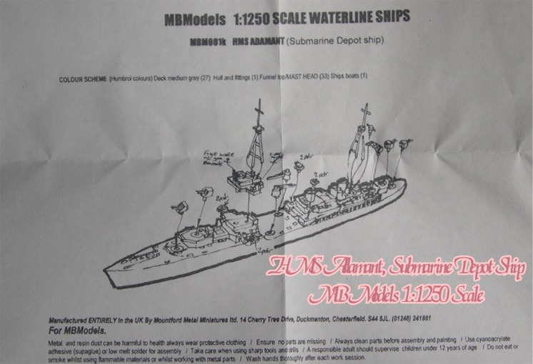 The HMS Adamant, submarine depot ship by MB Models, is available from Martin Brown's own web site, Waterline Ships Co. Simply click on the Red Duster.