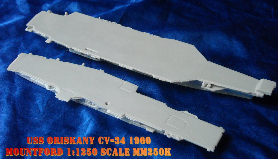 two versions of USS Oriskany in 1:1250 scale.