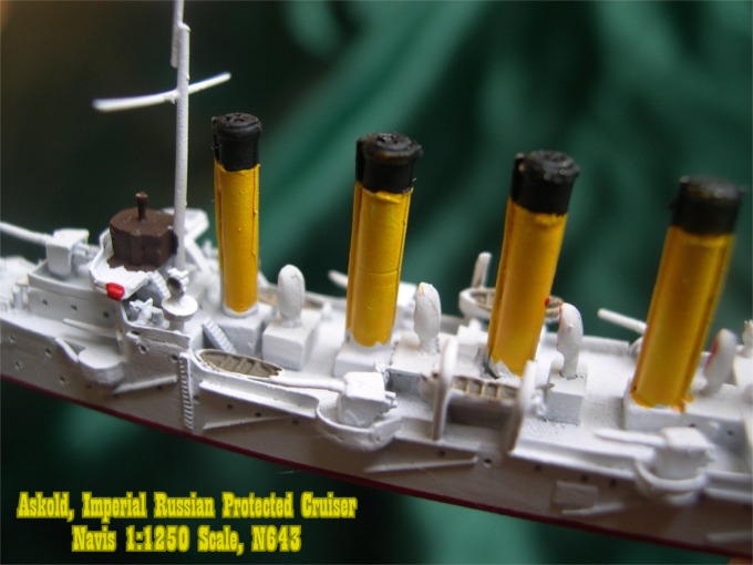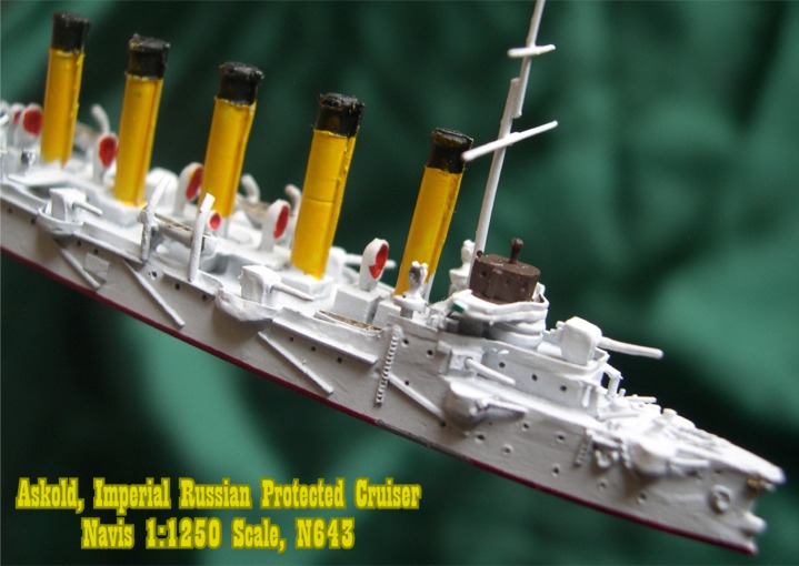 The end of the 19th Century saw the height of colonialism. Most European countries had large colonial empires with colonies scattered throughout the world. Countries outside Europe, such as the United States and Japan, had also acquired their own colonies. Imperial Russia had really never established a colonial empire. As the largest country in the world, Russia was a land power and overseas colonies generally came with possession of a navy. The only large overseas colony possessed by Russia, Alaska, had been sold to the United States earlier in the century. However, as the 20th century neared Russia was in the colony business again with a focus on Imperial China and Korea. In the colonial game at the time, warships impressed the locals and one of the impact features was the number of funnels carried by a warship. The perception was that there was a direct correlation between the quantity of funnels of a ship and her power. British captains had been known to add fake funnels to their ships to make them look more impressive to the locals. Imperial Russia had one cruiser that did not need to add anything to impress in this arena and that was the protected cruiser Askold.