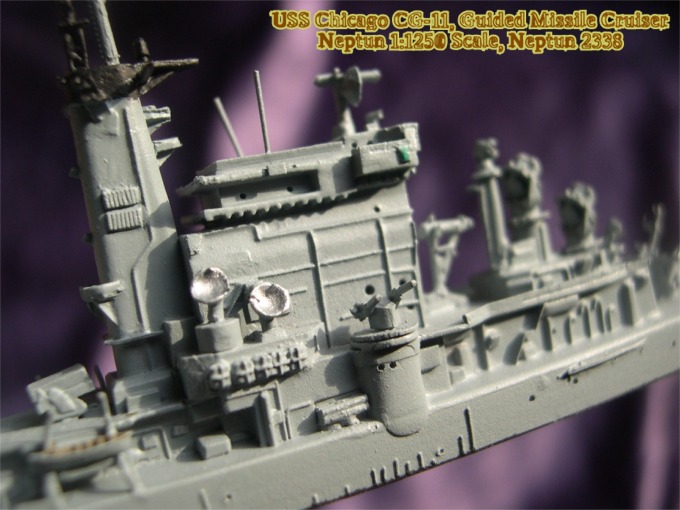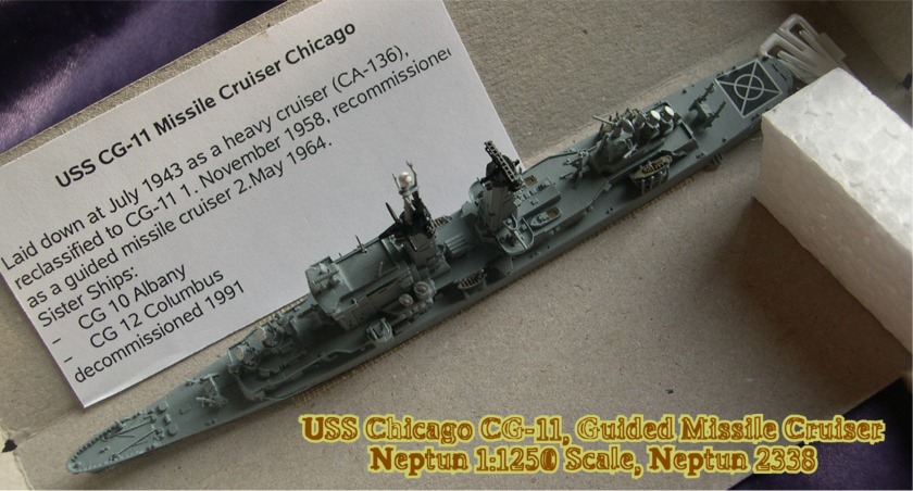 The razee was a type of warship found in the 18th and early 19th centuries. It was normally a type of frigate, which had started out as a ship of the line. The life of older ships of the line could be extended by removing the upper gun deck and leaving only the one gun deck of a frigate. With their blunter underwater form, they were still slower than traditional frigates but their closer framing made them stronger. The USS Albany, Chicago and Columbus were modern razees from two Baltimore and one Oregon City cruisers. They were taken in hand and razeed to the weather deck. A completely new superstructure and weapons system was added to the hull with no vestige of the old gun equipped cruisers left above deck. Prominent was the very high forward superstructure, which for the most part was a hollow shell designed to achieve the height necessary for the tracking and targeting radars. A new SAM missile was fitted, the Tartar and masts and stacks were lumped together as "macks". The original design had no guns and would have been helpless against surface attack. It took President John F. Kennedy to demand that these ships have some form of gun mount so the USN belatedly added two 5-inch/25 open mounts. The results were three ships with a very unique and imposing superstructure. Although the Columbus was the first of the three to be decommissioned in 1975 but Albany and Chicago made it into the 1980s.