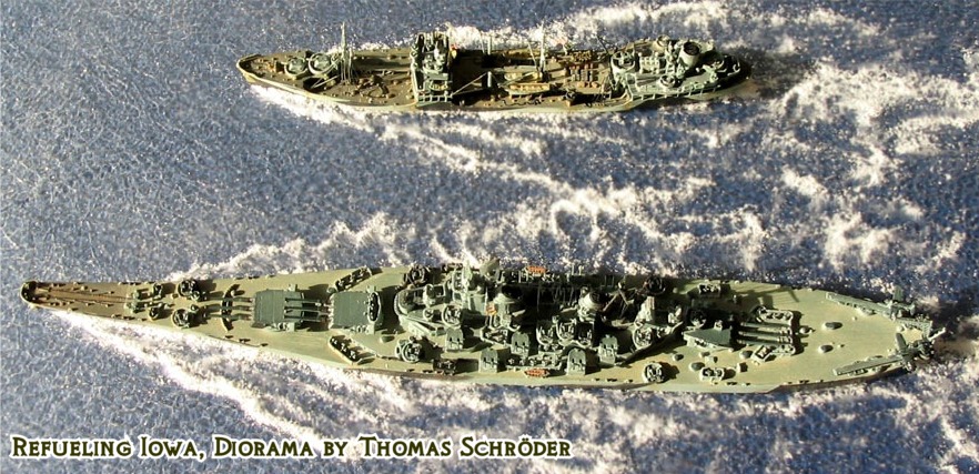 The scene shows the Neptun Iowa shortly before a refueling by AO-22 USS