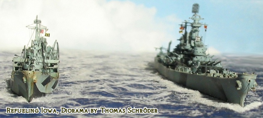 Cimarron, also Neptun, but converted long before the new Neptun version in camouflage. You can see my older types of radar antennas made of some plastic-gauze material.. While the Cimarron is wearing the measure 32/13T, Iowa shows her unique two-tone scheme of