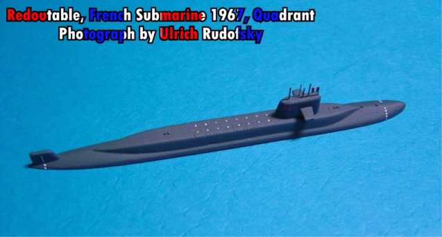 Among the long list of superb submarine models presently launched or "under construction" by Alain Picouet (QUADRANT) is the French Marine Nationale REDOUTABLE (1967). This finely made, hand-painted model is illustrated here. The French submarine is a museum ship in Cherbourg.