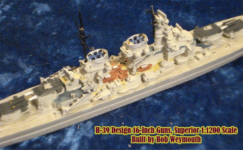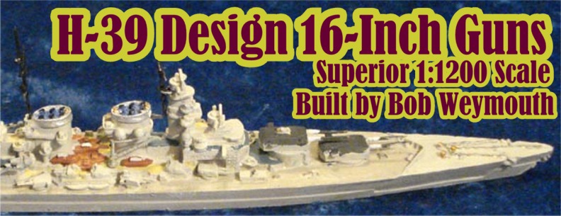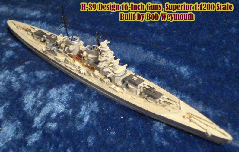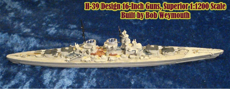 This is the H-39 German Battleship Design with eight 16inch guns in 1:1200 scale by Superior Models, model G104. This design was the basic plan proceeded with and other than the main battery was no different than the design with twelve 15-inch guns, G103. This class was cancelled due to higher priorities for U-Boat construction.