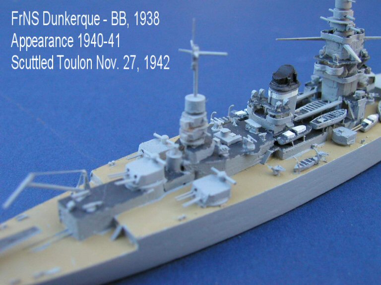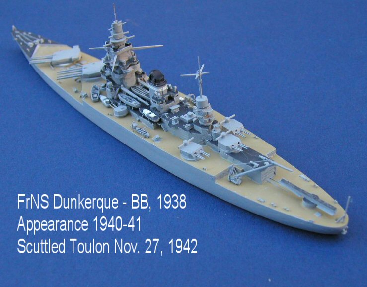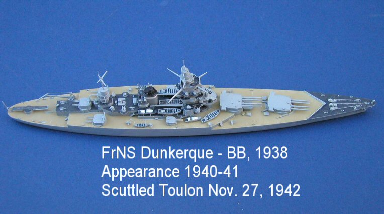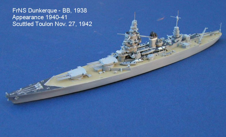 Here are photos of my re-make of the French battlecruiser Dunkerque as she appeared in 1940-41. The "original" had been sold and I wanted a "companion" to my new Jean Bart.
